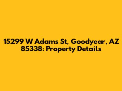 Alright, guys, let's dive into the details of 15299 W Adams St, Goodyear, AZ 85338. This property is located in the heart of Goodyear, Arizona, and offers a blend of comfort and convenience. Whether you're a potential buyer, seller, or just a curious neighbor, understanding the nuances of this address can be super valuable. We're going to break down everything you need to know, from its location perks to possible property features.