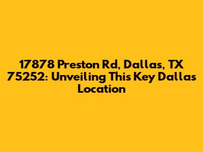 Alright, guys, let’s dive into everything you need to know about 17878 Preston Rd, Dallas, TX 75252. This isn't just some random address; it's a spot with significance, whether you're looking to visit, send mail, or just curious about what's there. We're going to break down exactly why this location is worth knowing about, providing a detailed overview that covers its importance, what kind of businesses or services you might find, and how it connects to the broader Dallas area. Understanding the details of an address like this can be super helpful for navigating the city, finding specific resources, or even just impressing your friends with your Dallas knowledge. So, let’s get started and uncover all the interesting facets of 17878 Preston Rd. Think of this address as a key point in a larger map, with each detail contributing to a fuller picture of Dallas. The convenience and accessibility of this location make it a notable spot for residents and visitors alike. Its placement along Preston Road, a major thoroughfare, ensures that it's easily reachable and well-connected to other parts of the city. This connectivity is a major factor in why businesses thrive here and why it remains a crucial point of interest for many.