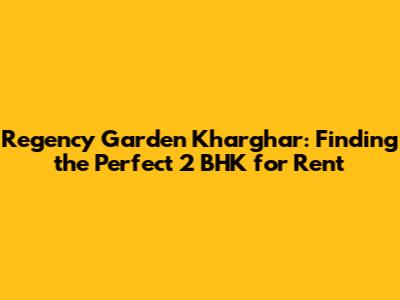 Finding a 2 BHK for rent in Regency Garden, Kharghar can be a breeze if you know what to look for and how to navigate the market. Keep these tips in mind, and you'll be settling into your dream apartment in no time!