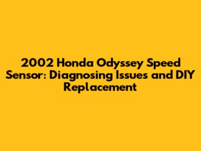 2002 Honda Odyssey Speed Sensor: Troubleshooting & Replacement
