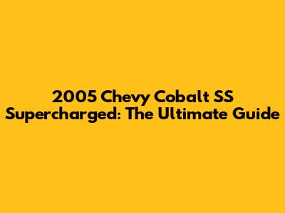 2005 Chevy Cobalt SS Supercharged: A Comprehensive Guide