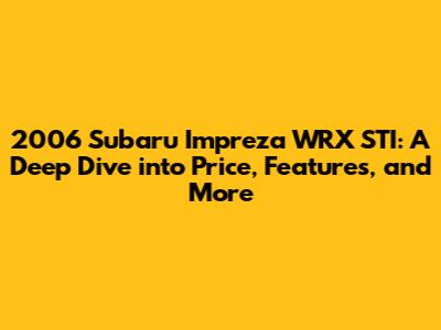 Hey car enthusiasts! Today, we're diving deep into a legend: the 2006 Subaru Impreza WRX STI. This isn't just any car; it's a rally-bred beast that has captured the hearts of drivers worldwide. If you're wondering about the 2006 Subaru Impreza WRX STI harga (price), you've come to the right place. We'll explore everything from its performance specs to what you should expect to pay in today's market, and why this car remains so highly sought after. Get ready to rev up your engines because we are starting!