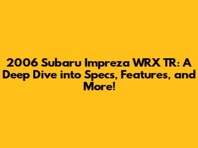 2006 Subaru Impreza WRX TR: Specs, Features, And More!