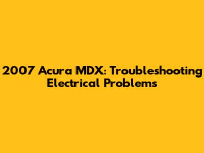 Specific Electrical Problems and Solutions for the 2007 Acura MDX