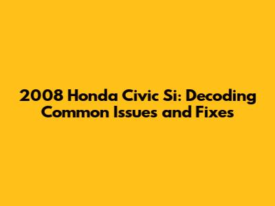 2008 Honda Civic Si: Common Problems & Solutions