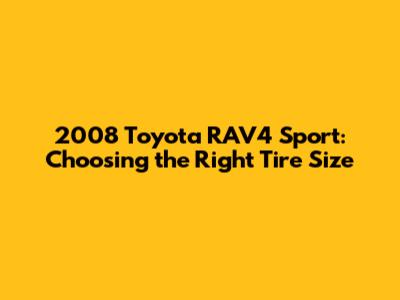 2008 Toyota RAV4 Sport: Choosing The Right Tire Size