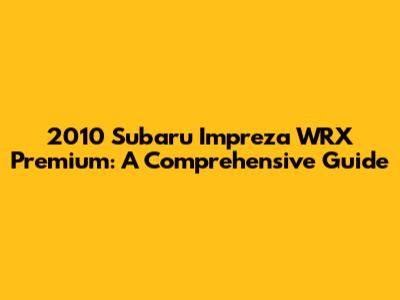 2010 Subaru Impreza WRX Premium: A Comprehensive Guide