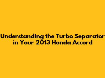 Understanding the Turbo Separator in Your 2013 Honda Accord
