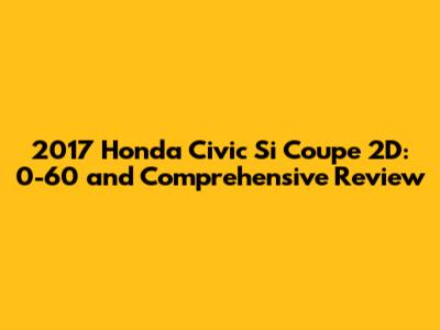 Hey guys! Let's dive deep into the 2017 Honda Civic Si Coupe 2D, a car that many of us remember fondly. Today, we're zeroing in on its 0-60 mph time, but also giving you a broad overview of what made this car so special. This isn't just about raw numbers; it's about the experience and the legacy of the Civic Si. The Civic Si has always been that sweet spot – a car that offers both practicality and a punch of performance without breaking the bank. The 2017 model year was no exception, continuing the tradition of providing an engaging driving experience for enthusiasts. Whether you're a long-time Honda fan or just curious about what this car has to offer, stick around as we break down everything you need to know. So, buckle up, because we're about to take a ride down memory lane and explore what made the 2017 Civic Si Coupe a standout in its class.