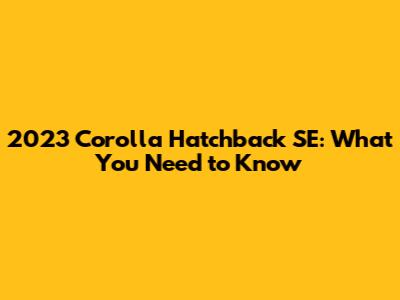 2023 Corolla Hatchback SE: What You Need To Know
