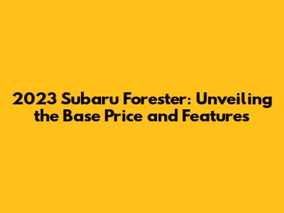 Hey everyone! Let's dive into the 2023 Subaru Forester! If you're in the market for a reliable and capable compact SUV, you're likely eyeing this popular model. A key question on everyone's mind is the 2023 Subaru Forester base price, and we're here to break it down. But we're not just stopping at the price; we'll also explore the features you get with that base model, giving you a comprehensive overview to help you make an informed decision. The 2023 Forester has a lot to offer, from its standard all-wheel drive to its impressive safety features, making it a strong contender in its class. So, buckle up, and let's get started on exploring what makes the 2023 Subaru Forester such a sought-after vehicle, and how that initial price tag translates into value. We'll look at what you get with the entry-level trim and highlight why the Forester continues to be a favorite among drivers who value both practicality and performance. Understanding the initial investment is just the beginning, so we will delve into the features.