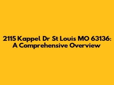 Hey guys! Let's dive into everything you need to know about 2115 Kappel Dr, St. Louis, MO 63136. Whether you're considering moving here, investing in the area, or just curious about this specific address, this guide will provide you with a detailed look at the property, neighborhood, and surrounding community. We'll cover everything from the property's features and local amenities to school districts and nearby attractions. So, grab a coffee, get comfy, and let's explore!
