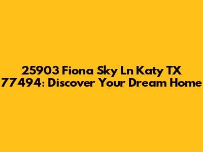 Hey guys! Are you looking for a fantastic new place to call home in Katy, TX? Well, you've landed in the right spot! Let's dive into everything you need to know about the property located at 25903 Fiona Sky Ln, Katy, TX 77494. This article will give you a comprehensive overview, ensuring you have all the details at your fingertips to make an informed decision. Whether you're a first-time homebuyer or looking to upgrade, this property might just be the perfect fit for you.