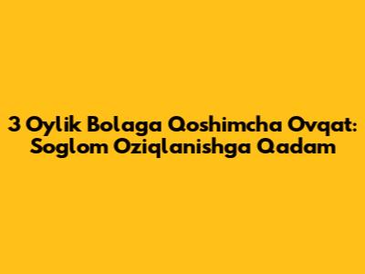 3 oylik bolaga qo'shimcha ovqat berish – bu mas'uliyatli jarayon. Ushbu maqolada sizga ushbu jarayonning asosiy jihatlari, ya'ni qachon boshlash kerakligi, nima berish kerakligi va qanday qilib to'g'ri taqdim etish haqida ma'lumot berishga harakat qildik. Esingizda bo'lsin, har bir bola individualdir. Shifokor bilan maslahatlashish va bolaning reaksiyasini kuzatish juda muhim. Sabr-toqat bilan bolangizga sog'lom oziqlanishni o'rgating va uning sog'lom rivojlanishidan zavqlaning. Unutmang, bolaning rivojlanishi uchun to'g'ri ovqatlanish muhim omillardan biridir.