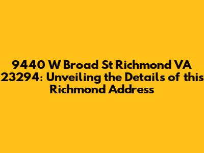 Hey guys! Ever find yourself needing info on a specific address? Today, we're diving deep into 9440 W Broad St, Richmond, VA 23294. This isn't just about pinpointing a location on a map; it's about uncovering the details that make this address significant. Whether you're a prospective resident, a curious neighbor, or just doing some research, we've got you covered. We'll explore everything from the surrounding neighborhood to potential businesses located there, and even touch on the overall vibe of the area. So, buckle up and let's get started!