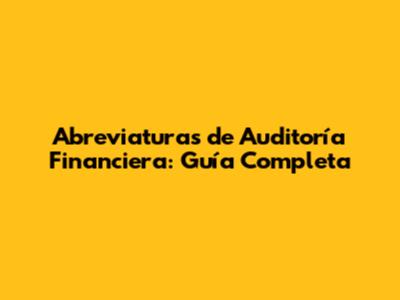 Abreviaturas De Auditoría Financiera: Guía Completa