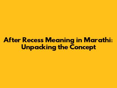 After Recess Meaning In Marathi: A Comprehensive Guide