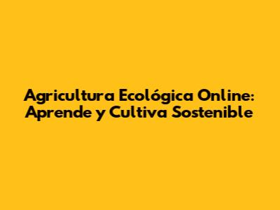 Agricultura Ecológica Online: Aprende Y Cultiva Sostenible