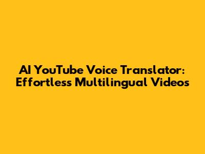 AI YouTube Voice Translator: Effortless Multilingual Videos