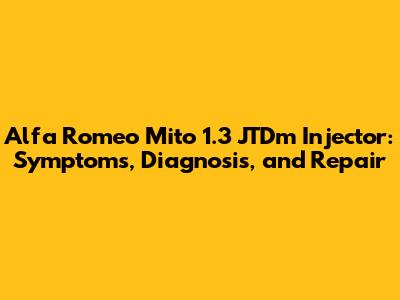 Alfa Romeo Mito 1.3 JTDm Injector: Symptoms, Diagnosis, And Repair