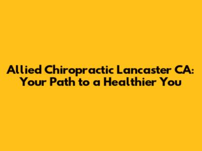 Allied Chiropractic In Lancaster, CA: Your Guide To Wellness
