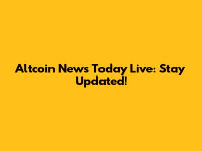 Altcoin News Today Live: Stay Updated!