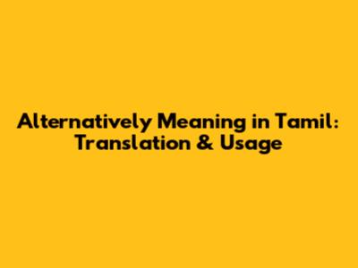 Core Translations of "Alternatively" in Tamil