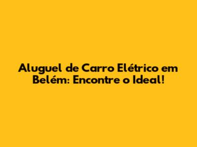 Aluguel De Carro Elétrico Em Belém: Encontre O Ideal!