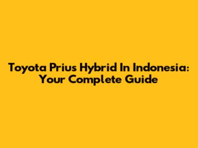 Toyota Prius Hybrid In Indonesia: Your Complete Guide