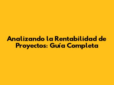 Analizando La Rentabilidad De Proyectos: Guía Completa