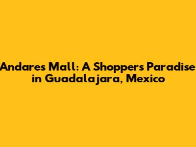 Hey guys, if you're planning a trip to the vibrant city of Guadalajara, Mexico, and you're a fan of shopping, then Andares Mall needs to be on your radar. This isn't just any shopping center; it's a destination. I'm talking about a place where you can spend an entire day, maybe even two, exploring a mix of high-end brands, local boutiques, delicious restaurants, and entertainment options. Trust me, it's an experience! Let's dive into what makes Andares Mall so special and why it's a must-visit when you're in Guadalajara. We'll cover everything from the stores and dining options to getting there and making the most of your visit. So, buckle up; we're about to embark on a virtual tour of one of Guadalajara's crown jewels.