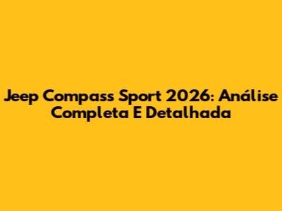 Jeep Compass Sport 2026: Análise Completa E Detalhada