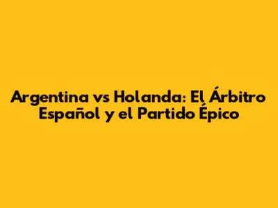 Argentina Vs Holanda: El Árbitro Español Y El Partido Épico