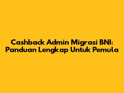 Cashback Admin Migrasi BNI: Panduan Lengkap Untuk Pemula