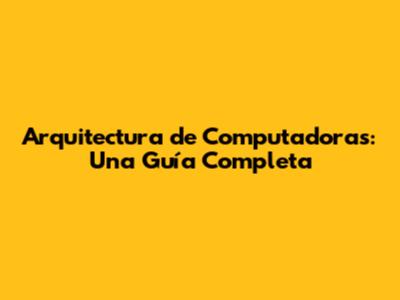Arquitectura De Computadoras: Una Guía Completa