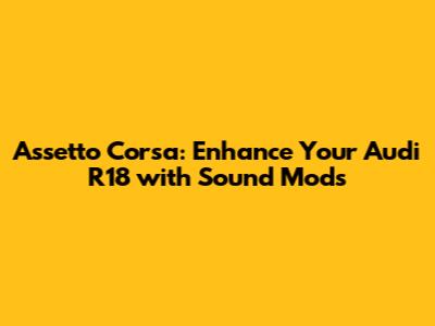 For all you Assetto Corsa fans out there, especially those who love the Audi R18, you know that getting the full immersive experience is key. And what’s a racing experience without that roaring engine sound? That's where sound mods come into play. Let's dive into how you can enhance your Audi R18 in Assetto Corsa with the best sound mods available.