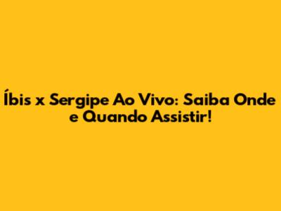 Assistir Íbis X Sergipe Ao Vivo: Saiba Onde E Quando!