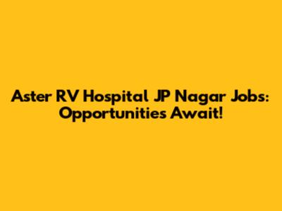 Aster RV Hospital JP Nagar Jobs: Opportunities Await!