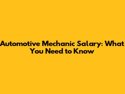 Automotive Mechanic Salary: What You Need To Know