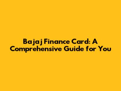Bajaj Finance Card: Complete Guide