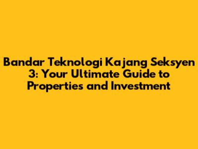 Bandar Teknologi Kajang Seksyen 3: A Comprehensive Guide