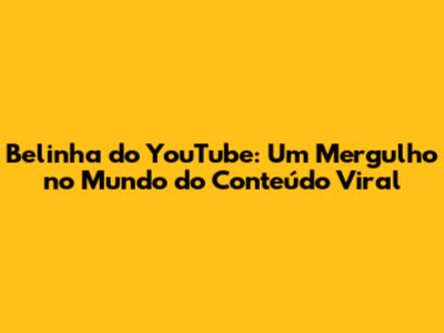 Belinha Do YouTube: O Fenômeno E Seus Bastidores