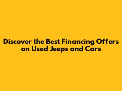 Hey guys! Are you on the hunt for the best financing offers on used Jeeps and cars? You've come to the right place! Navigating the world of auto financing can feel like traversing a dense jungle, but don't worry, I'm here to be your guide. Let's dive into everything you need to know to secure the best deal possible, whether you're dreaming of owning a rugged Jeep or a reliable sedan.
