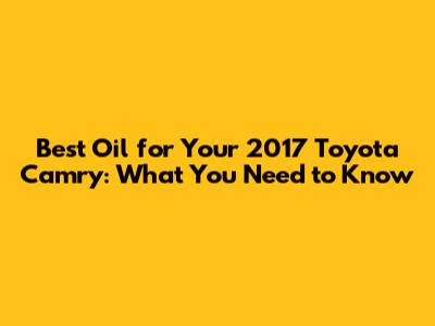 For a 2017 Camry, especially if you plan to keep it for a long time, synthetic oil is generally the best choice. It offers superior protection and can help extend the life of your engine. Plus, many synthetic oils allow for longer oil change intervals, which can save you time and money in the long run.