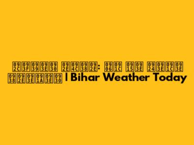 बिहार मौसम: आज का ताजा समाचार | Bihar Weather Today