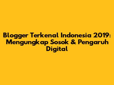 • Siapa saja blogger Indonesia yang paling terkenal di tahun 2019? Beberapa nama yang sangat populer termasuk [Nama Blogger 1], [Nama Blogger 2], [Nama Blogger 3], [Nama Blogger 4], [Nama Blogger 5], [Nama Blogger 6], [Nama Blogger 7], [Nama Blogger 8], dan [Nama Blogger 9].