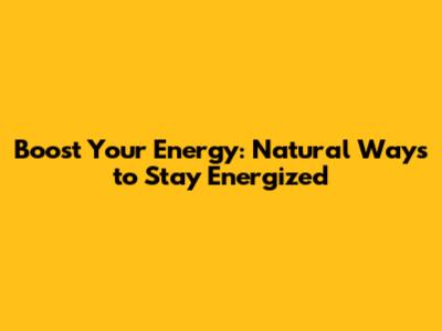 Boost Your Energy: Natural Ways To Stay Energized