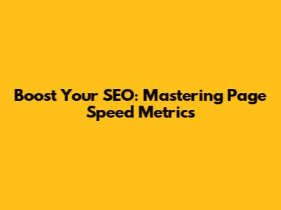 Boost Your SEO: Mastering Page Speed Metrics