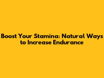 Boost Your Stamina: Natural Ways To Increase Endurance