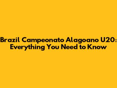 Brazil Campeonato Alagoano U20: Everything You Need To Know